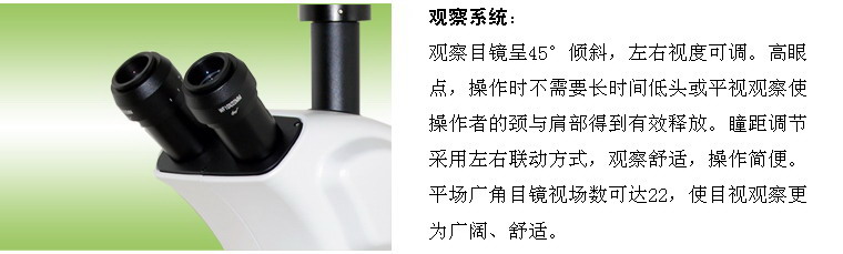 ★ 45°倾斜目视观察,左右视度可调,调节范围±5屈光度;瞳距可调,调节范围