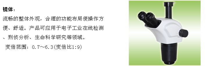 变倍范围:0.7~6.3(变倍比:1:9)